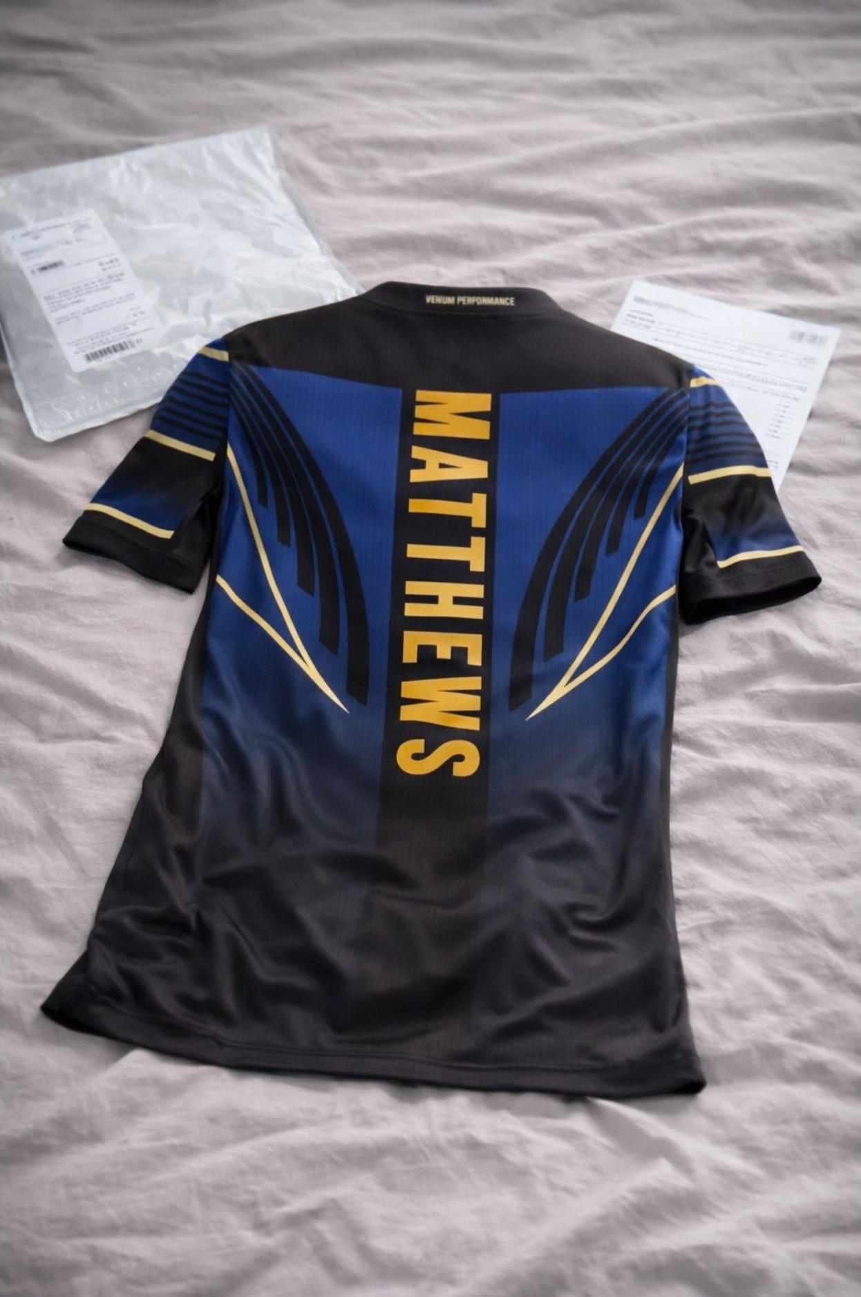 Made-to-order pieces with durable prints and crisp detailing for training and daily wear.